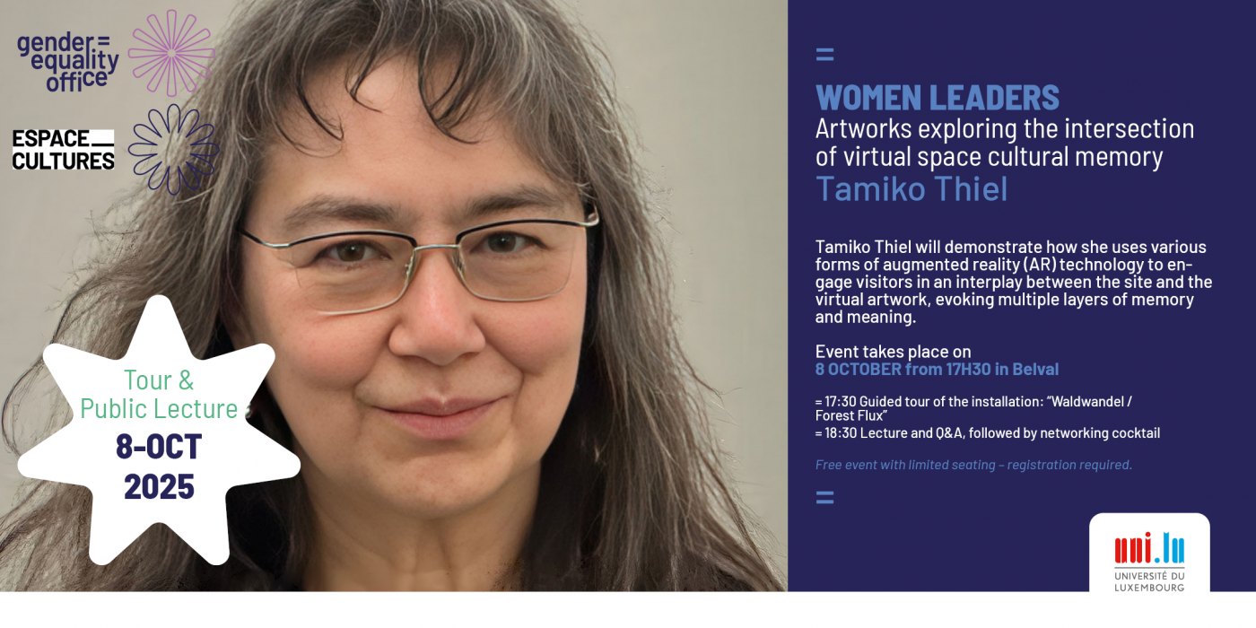On 8 October, the Office forgender equality and Espace Cultures will be welcoming Tamiko Thiel, an MIT engineer who is revolutionising art through technology and imagination. Tamiko Thiel's career began with studies in product design at Stanford University in 1979, followed by studies in mechanical engineering at MIT in 1983. She then joined the Thinking Machines Corporation, founded by Danny Hillis, where she led the product design team responsible for creating the first commercial artificial intelligence supercomputers, the Connection Machine CM-1 and CM-2. Ms Thiel went on to study fine art at the Akademie der Bildenden Künste in Munich and is a renowned digital artist.